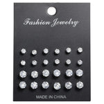 12 Pairs Cubic Zirconia Silver Earring Set Round Grand Party Bling UK CZ