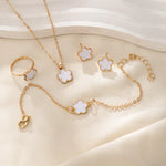 4 PCS Luxury Flower Stud Earrings Bracelet Necklace Ring Set for Women Delicate Plum Blossom Five Leaf Flower Jewelry Party Gift