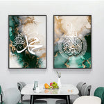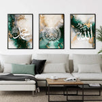 Islamic White Arabic Calligraphy Green Gold Beige Poster Wall Art Canvas Painting Print Picture Living Room Home Interior Decor