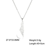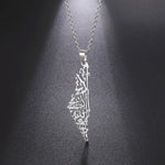 Stainless Steel Necklace For Women Men Palestine Israel Map Islamic Script Hollow Pendant Necklace Engagement Jewelry