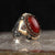 Trendy Handmade Middle East Arabic Turkish Signet RingS For Men Ancient Silver Color Red Garnet Stone Flame Ring Wedding Jewelry