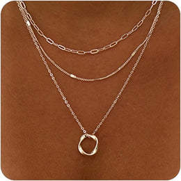 Product details Material Brass Metal type Brass Clasp type Lobster Metal weight 0.05 g Gem type No Gemstone About this item Layered Necklace Design:This silver necklace set consists of three necklaces of different styles, which...