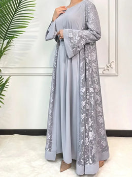 Ramadan Eid Abaya Set – 2-Piece Lace Kaftan Dress for Women, Dubai Style