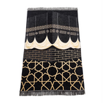 Muslim Prayer Rug Black Sajaddah Chenille Fabric Portable Pray Mat Janamaz