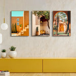3Pcs/Sets Boho Islamic Style Architecture Posters Canvas Painting Retro Brown Wall Art for Home Living Room Decoration Unframed