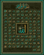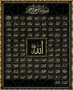 99 Names of Allah Muslim Islamic Calligraphy Canvas Art Gold Painting Poster and Print Wall Art Picture for Ramadan Mosque Decor