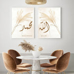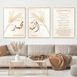 Islamic Calligraphy Allah Ayat Al Kursi Posters Boho Beige Pampas Canvas Painting Wall Art Print Pictures Living Room Home Decor