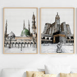Islamic Landmarks Wall Art Poster Kaaba Mecca Dome of The Rock Masjid Nabawi Islamic Canvas Painting Art Nordic Home Decor Gifts