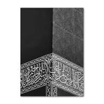 Modern Black and White Canvas Painting of Great Mosque of Mecca Kaaba Scripture Islamic Wall Art Poster for Living Room Decor El