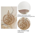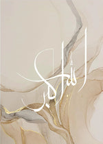 Islamic Calligraphy Allahu Akbar Beige Gold Marble Fluid Abstract Posters Pictures Wall Art Canvas Painting Living Room Decor