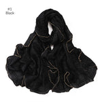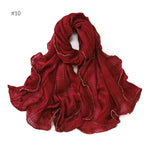 13 Color 80*180cm New Simple Silver Wire Wrinkle Plaid Solid Color Chain Gold Border Scarf Muslim Women Hijab Wrap Ramadan Islam
